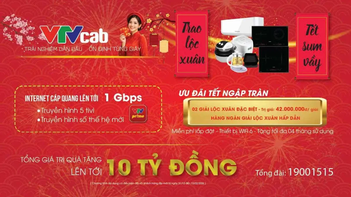 Năm mới Bính Ngọ đang tới rất gần, nhà nhà, người người đều háo hức đón đợi những thời khắc đầu tiên của năm 2026 với nhiều may mắn. Với 30 năm đồng hành của các gia đình Việt trên toàn quốc với các gói nội dung giải trí phong phú và bổ ích, thỏa mãn nhu cầu nghe nhìn của mỗi người, VTVcab mong Tết An Khang đến với mọi nhà thông qua chương trình ưu đãi mang nhiều lộc xuân tới khách hàng. Tổng giá trị giải thưởng lên tới 10 tỷ đồng.